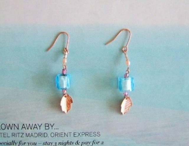 Mexico のカリブ海に浮かぶアイランド Playa del Carmen プラヤ・デル・カルメン✨ エメラルドグリーン色が宝石のように輝くビーチ 淡いピンク色の砂浜 心地よい優しいそよ風 をイメージしたオリジナルピアス✨ ✫ヴェネツィアングラス(Size : 13mm × 13mm) 【Size】 約 5.5 cm 【Spec】 Venetian glass, Swarovski, Rose quartz, Czech beads, PG leaf, PG ヴェネチアングラス、ローズクォーツ、スワロフスキー、チェコカット、 PGリーフ、PG