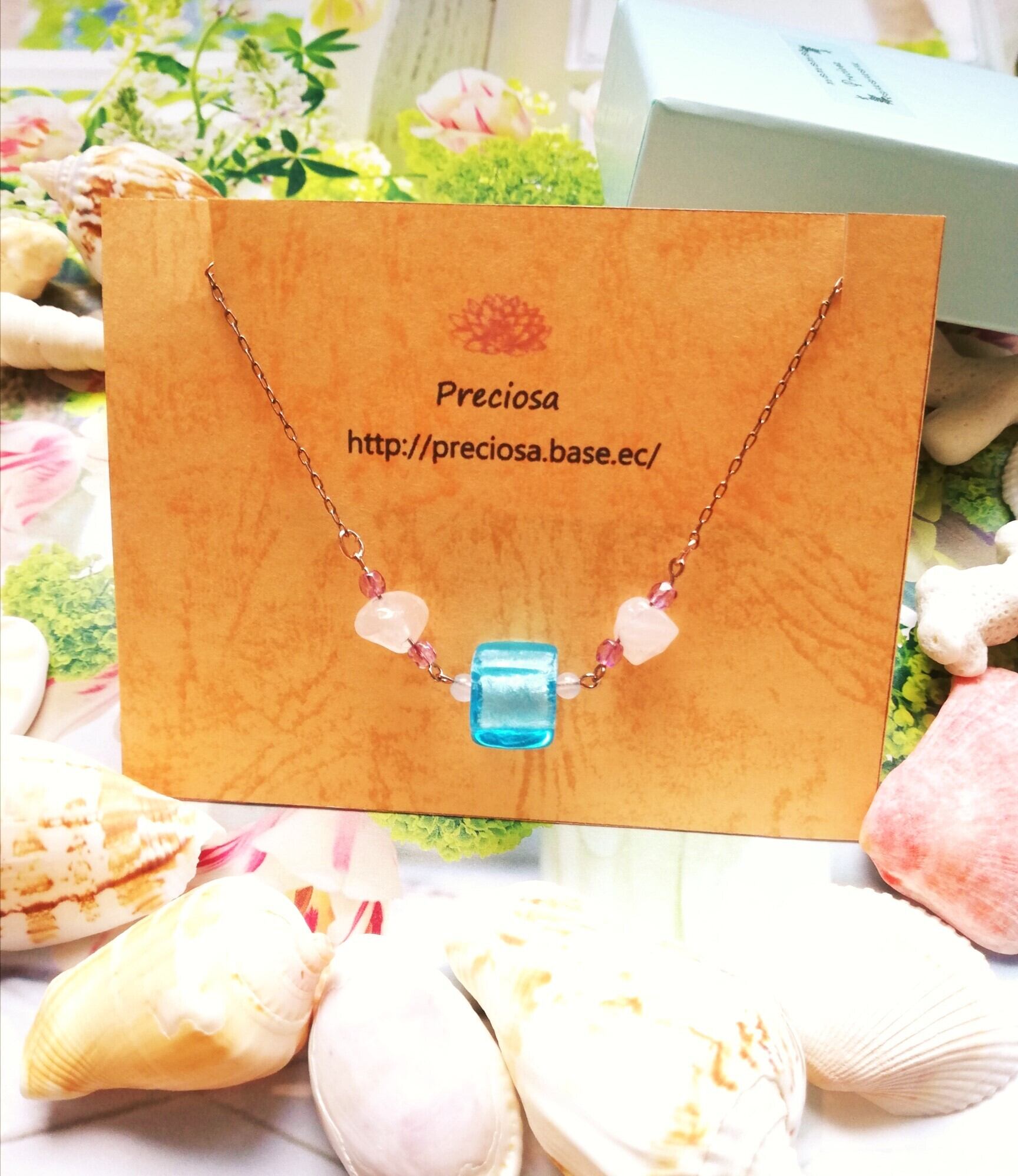 ヴェネツィアングラス、天然石ローズクォーツ、スワロフスキー、PG