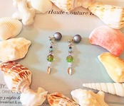 【Spec】 ヴェネツィアングラス(blue&green)、ローズクォーツ、PG、スワロフスキー、パール